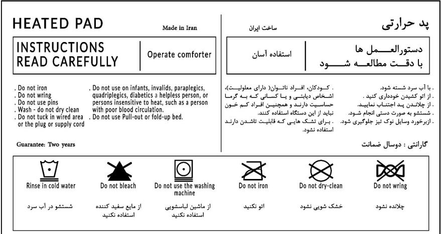 پد حرارتی160*200 کد کالا : 2238